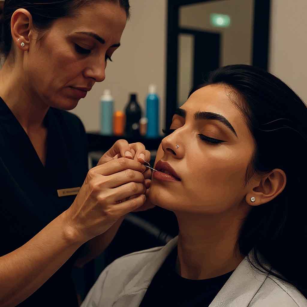 Avoid makeup and direct sunlight for at least 24 hours after the service. Use aloe vera or a calming lotion if mild redness occurs. Schedule regular sessions every 3–4 weeks to maintain a clean and smooth upperlip.